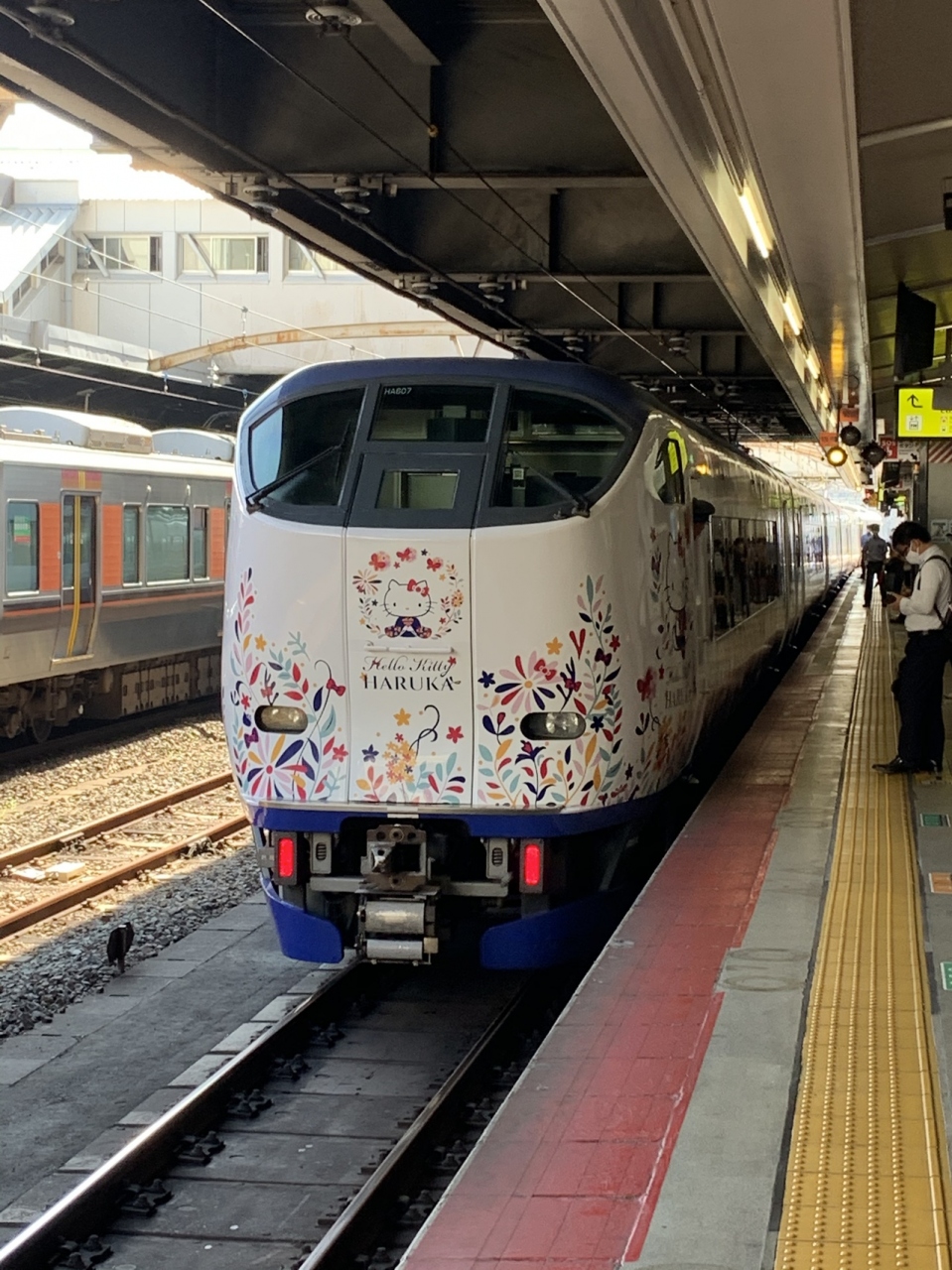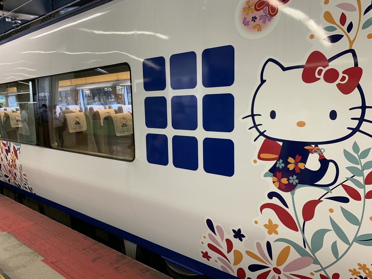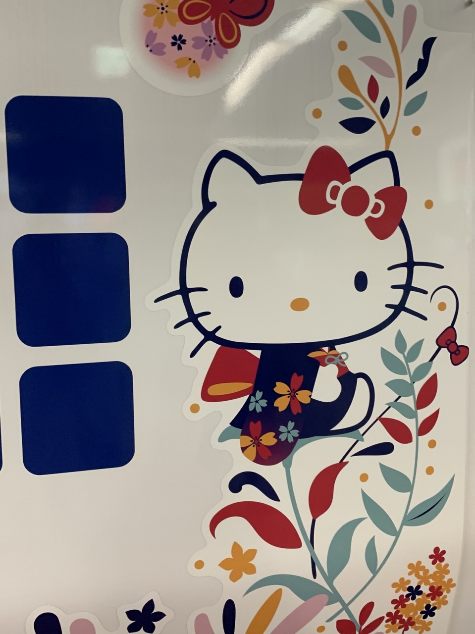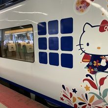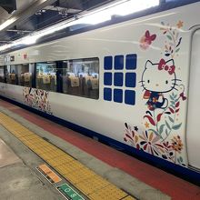 そこに可愛いキティーちゃんの電車が入ってきた!