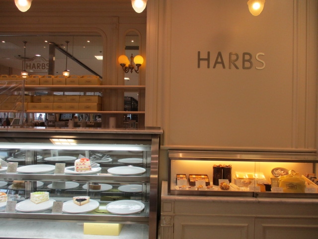JR高槻駅から南、デッキでつながる松坂屋の2階入り口を入ってすぐのところにある「ハーブス」。明るいカフェです。こちらの特徴はケーキです。どれもひと切れが大きいです。フルーツを使ったもの、ミルフィーユなど。おなかがすいているときにちょうどよいです。