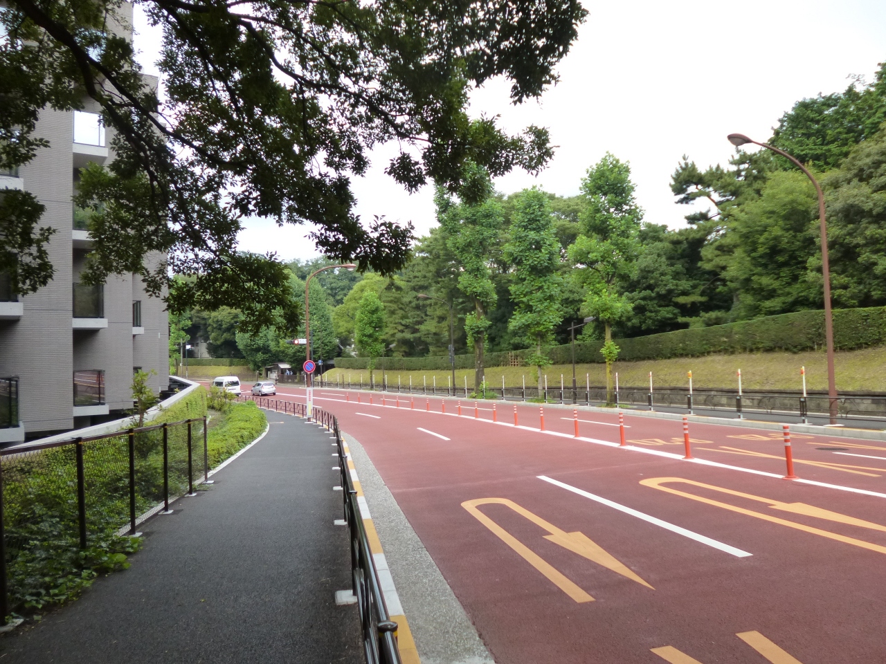 権田原の交差点から明治記念館と赤坂御所の間を通って下っていく坂です。昔、坂の前に安鎮大権現の社があったことからこの名前が付いたようです。坂を下っていくと右手は、ずっと赤坂御用地の緑が続いています。坂を下りきったところに、赤坂御所の門があり、警察官がいつも警備しています。