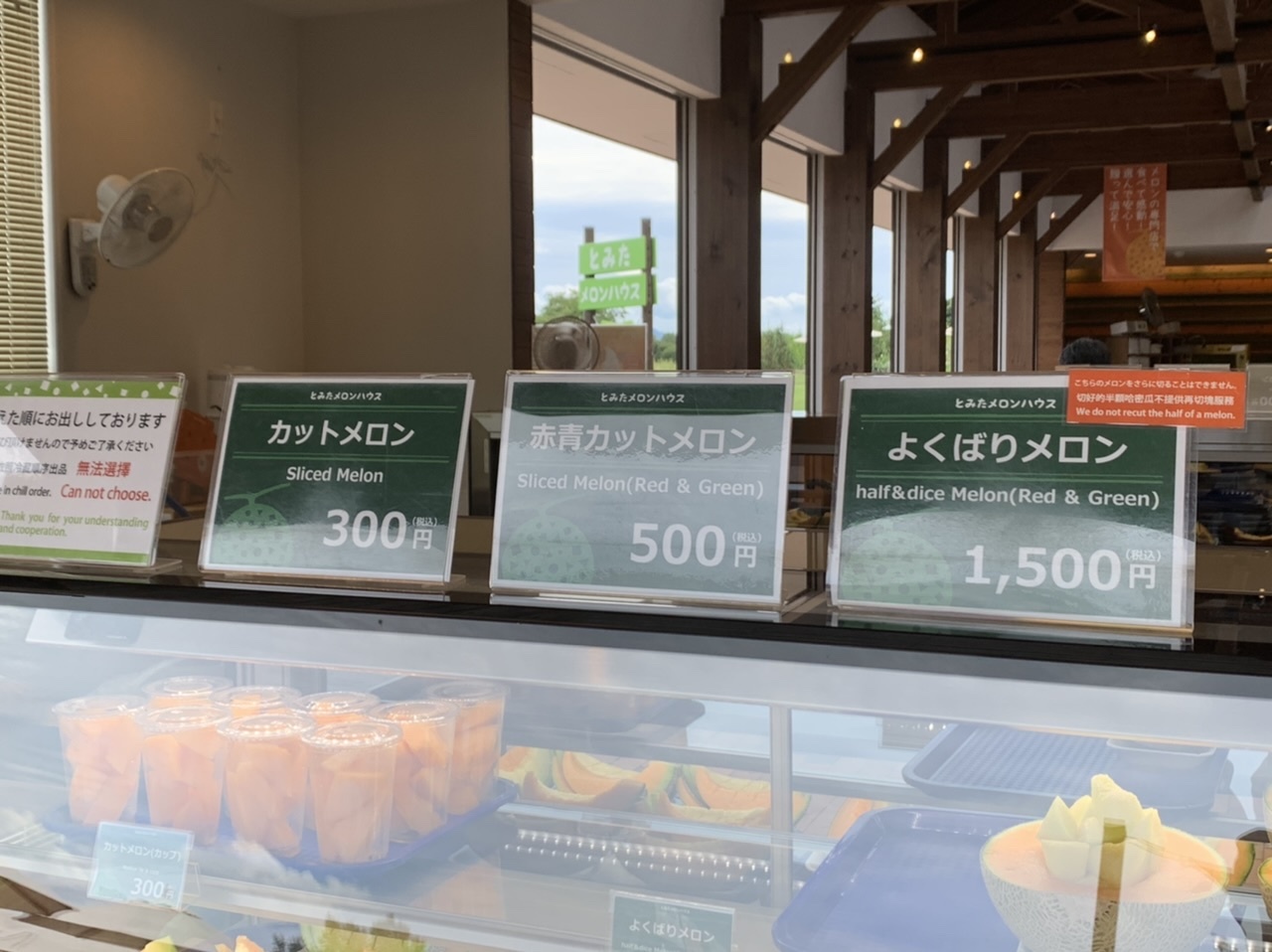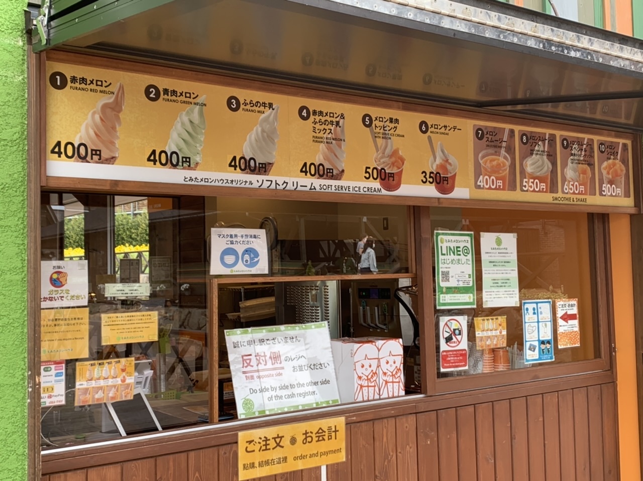 ファーム富田の隣にあるメロンの専門店。カットメロンが300円、メロンスムージーが400円と手頃な値段でメロンを楽しめます。8月下旬に伺いましたが、ほとんど観光客はおらず空いていました。奥にひまわり畑があり、写真映えするスポットのあります。