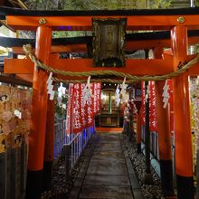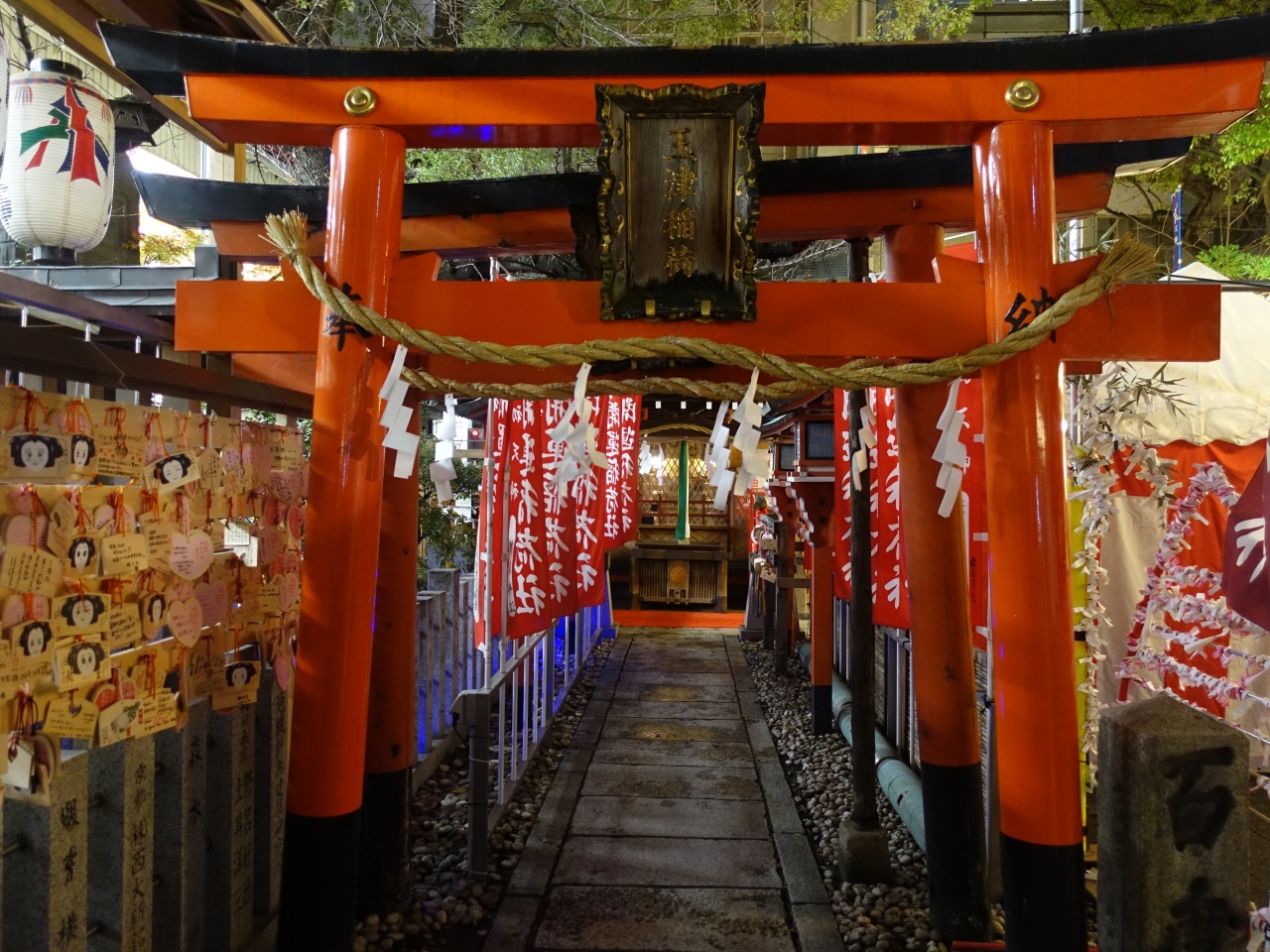 夕食後の散策の散策の際に露天神社にお参りしました。境内の中で一番目立っていたのが末社の「開運稲荷社」です。赤い鳥居が並び、また数多くの赤い幟が目を引いていました。1月初旬なので、おみくじや絵馬の姿も多数見られました。鳥居の先に見える石畳、その奥に鎮座する祠も記憶に鮮明です。