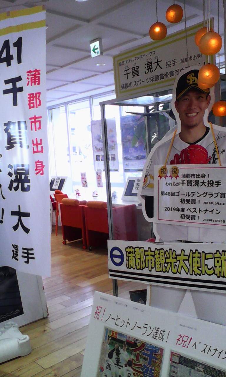 駅近くの竹島方面へ行くための地図などを入手できてよかったのですが、他にもこの年ホークスからデビューして大活躍だったプロ野球の千賀滉大選手を地元のヒーロー(蒲郡市出身)としてイチ押ししてたりと変わった見どころがあって面白かったです。