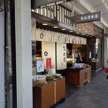 1Fは和菓子販売スペース、2Fは喫茶スペースとなっている。