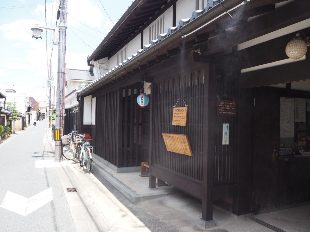 路地を入っていくと、格子が印象的な江戸時代を彷彿させる伝統的な家屋が続きます。