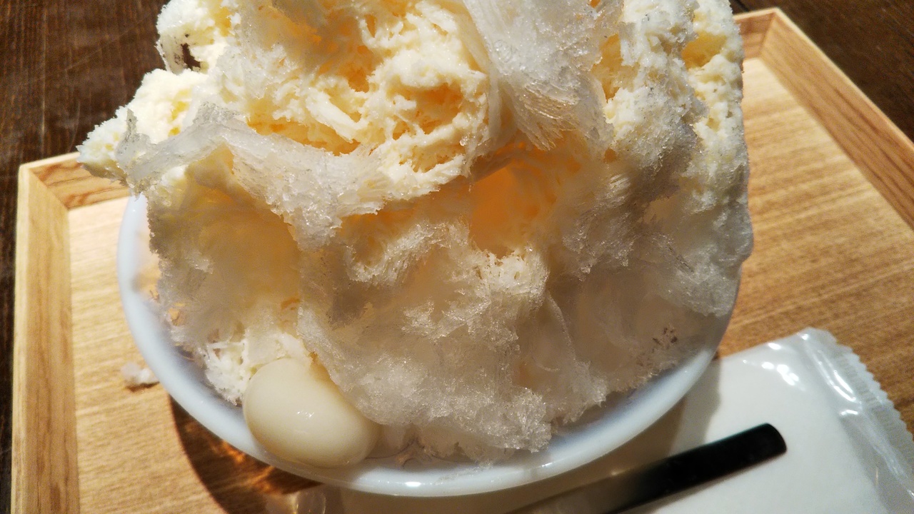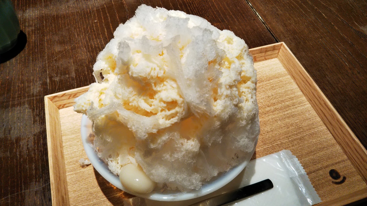 店の奥にイートインスペース(茶房)があり、かき氷などを味わうことができる。とても落ち着いた空間で、ゆっくり過ごせる。かき氷は夏季限定であり、それ以外のメニューは通年あるようである。白玉も程よいモチモチ加減でおいしい☆