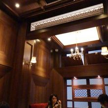 天井にはシャンデリアがあり、壁は木目調になっている等、昔の高級なサロンの様なシックな雰囲気。