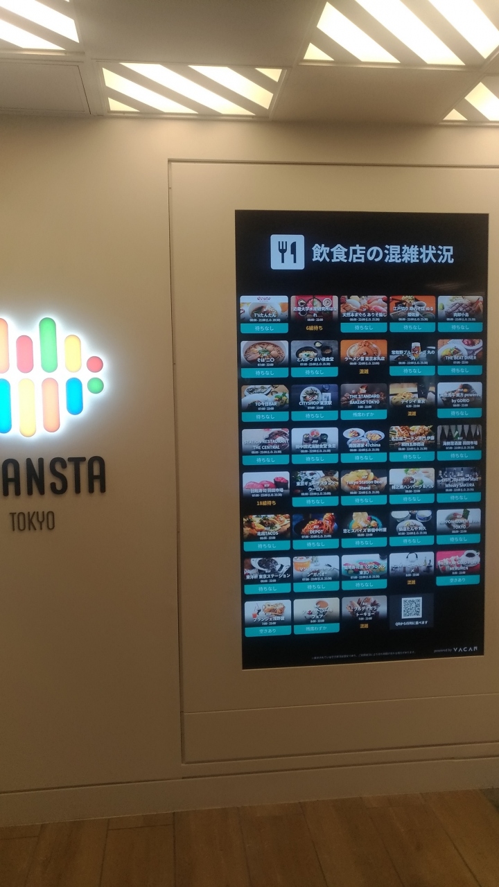 外出自粛要請明け以来久しぶりに東京駅に行ったら、グランスタが拡張され、地下通路だけでなく、1階の地上通路部分にもお店が出店されていました。コロナ対策もバッチリで、各飲食店の混雑状況を示した電子パネルが設置されていました。さすが東京駅。