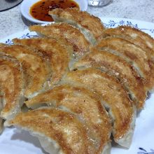 痛み駅前の赤看板が目印です。カウンター出店は狭いけど、回転は早い気がします。2人前からの注文。1人で2人前はペロリテベれます。小さめの餃子です。味はしっかり目で、パリパリ餃子です。近くの王将によく行ってましたが、餃子だけならこっちもありかも。テイクアウトあり。