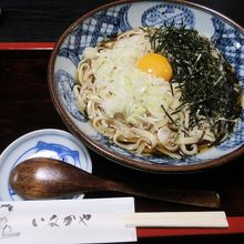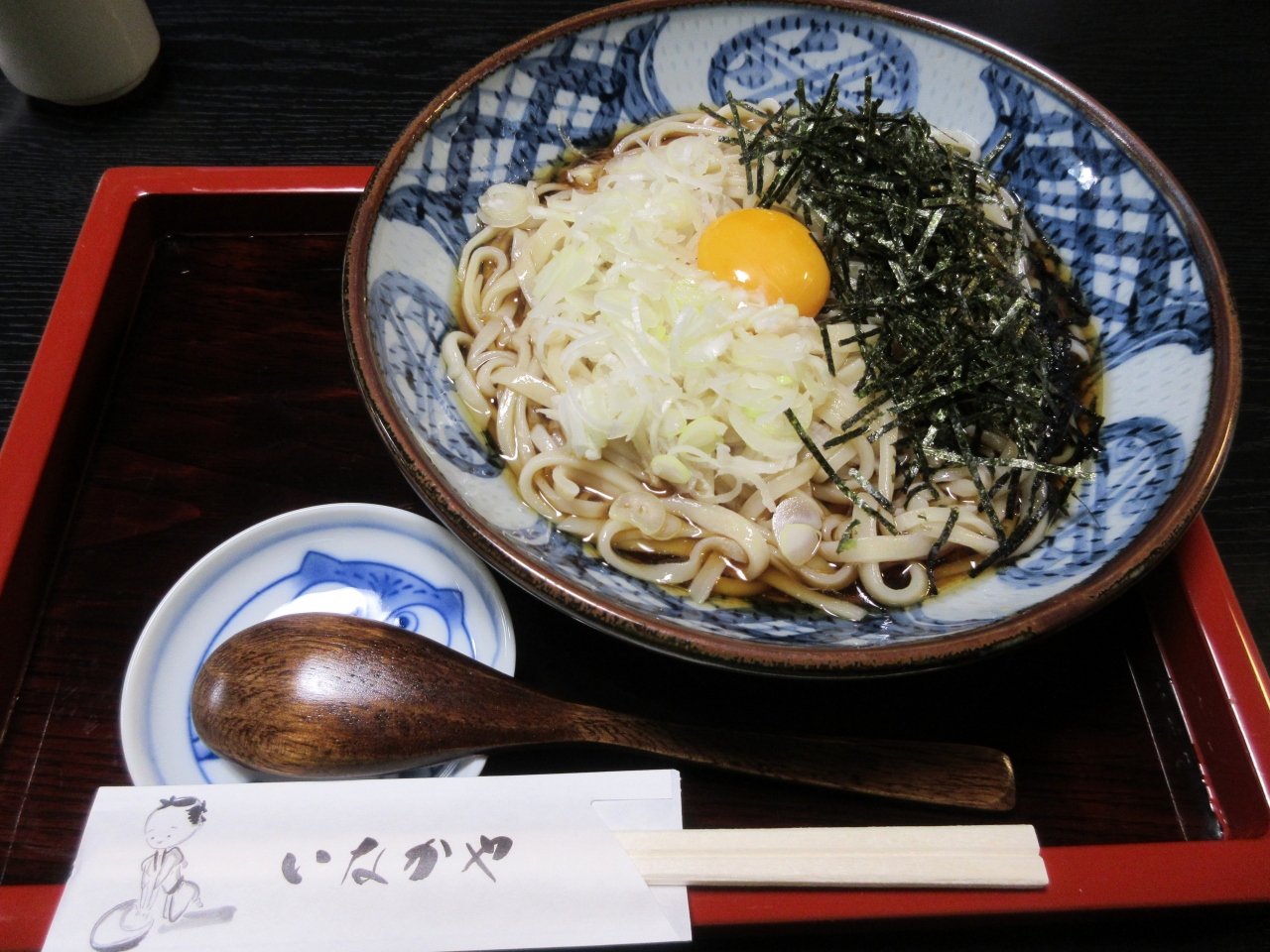 奈良井宿沿いにあるうどん屋です。2年ほど前に店を始めたそうで、店内は畳の上に椅子とテーブルを置き、椅子に座って食事ができるようになっています。親鳥の肉が入った冷しひねうどんの肉はやや硬いものの、噛めば噛むほど甘味と旨味が出て美味しく感じました。ごま油で味付けされ、崩れにくい卵黄がのったやみつきうどんは香ばしく感じられました。うどんは細麺にもかかわらず腰があり美味しかったですが、汁がやや濃く感じました。奈良井宿沿いには多くの蕎麦屋さんが点在していますが、うどん派の方にはおすすめの店です。