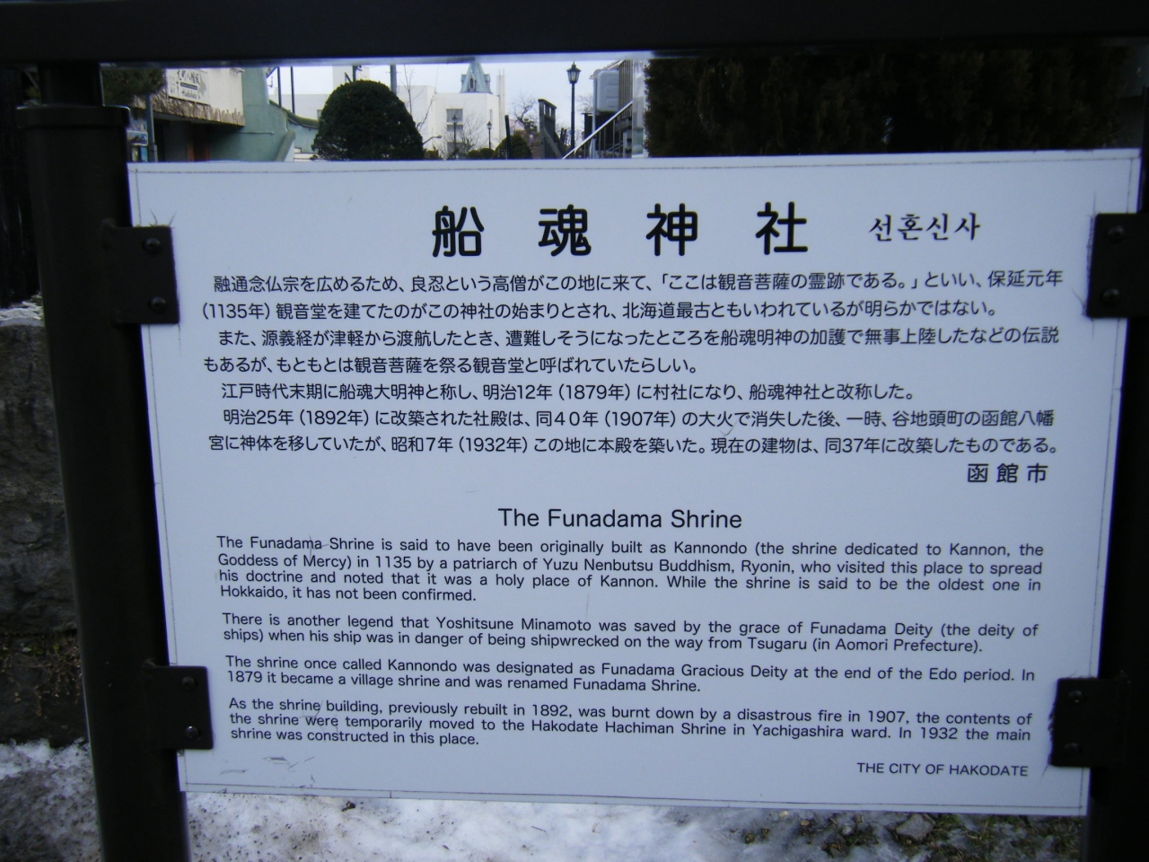 2020年1月に函館旅行をした際に立ち寄りました。函館山にある日和坂の付きあたりにある神社で、創建はかなり古く今から750年ほど前の保延元年(1185年)とされています。北海道最古の神社とも言われているそうですが、その点については定かではないとの事です。また源義経伝説なども残されているそうです。御祭神は塩土老翁神、大綿津見神、素戔嗚尊で、海上安全や開運の御利益があるとの事です。境内はそれほど広くはありませんが、綺麗に整備された神社で落ち着く場所でした。