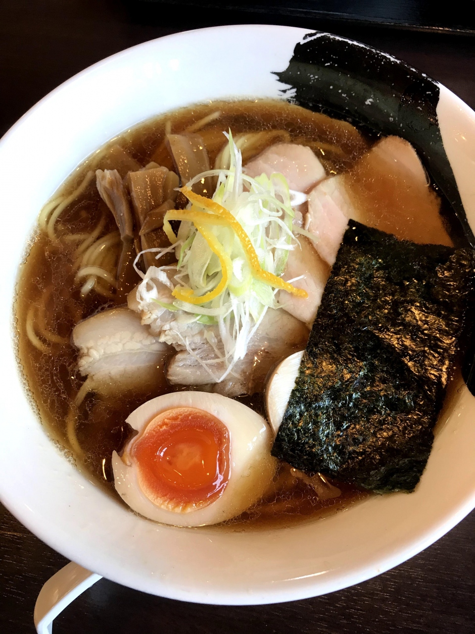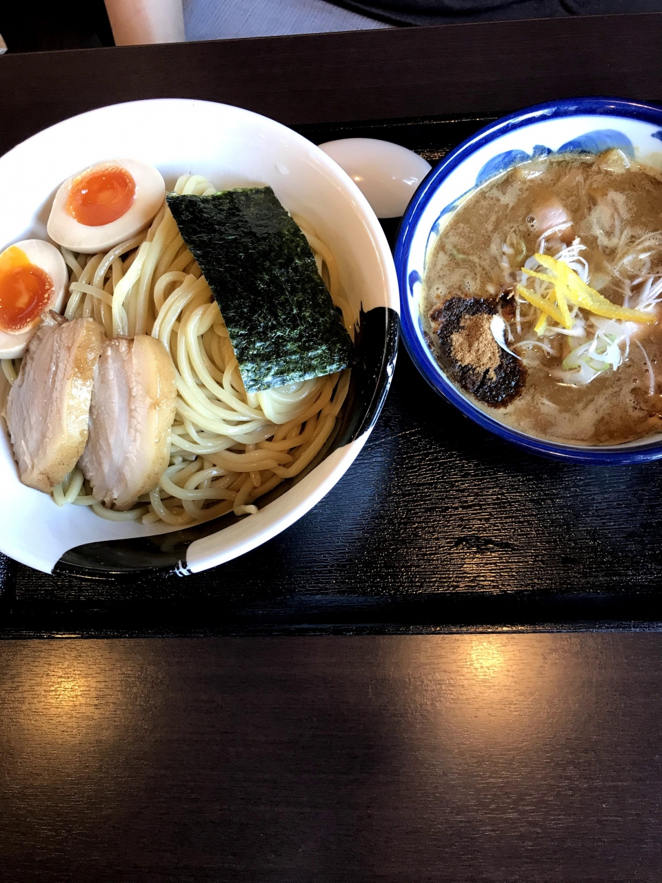 私は濃厚煮干しラーメンを連れは、濃厚煮干しつけ麺をいただきました。2人とも縮れ麺が好きなのですが、こちらはストレートでももっちりと歯応えがあって美味しかった!チャーシューも2種類が2枚ずつで大満足。つけ麺も味見をしましたが、こちらは甘め?煮干しは濃厚なのですが甘味が私には強すぎでした。次回もラーメンでいただきます。