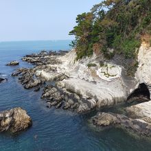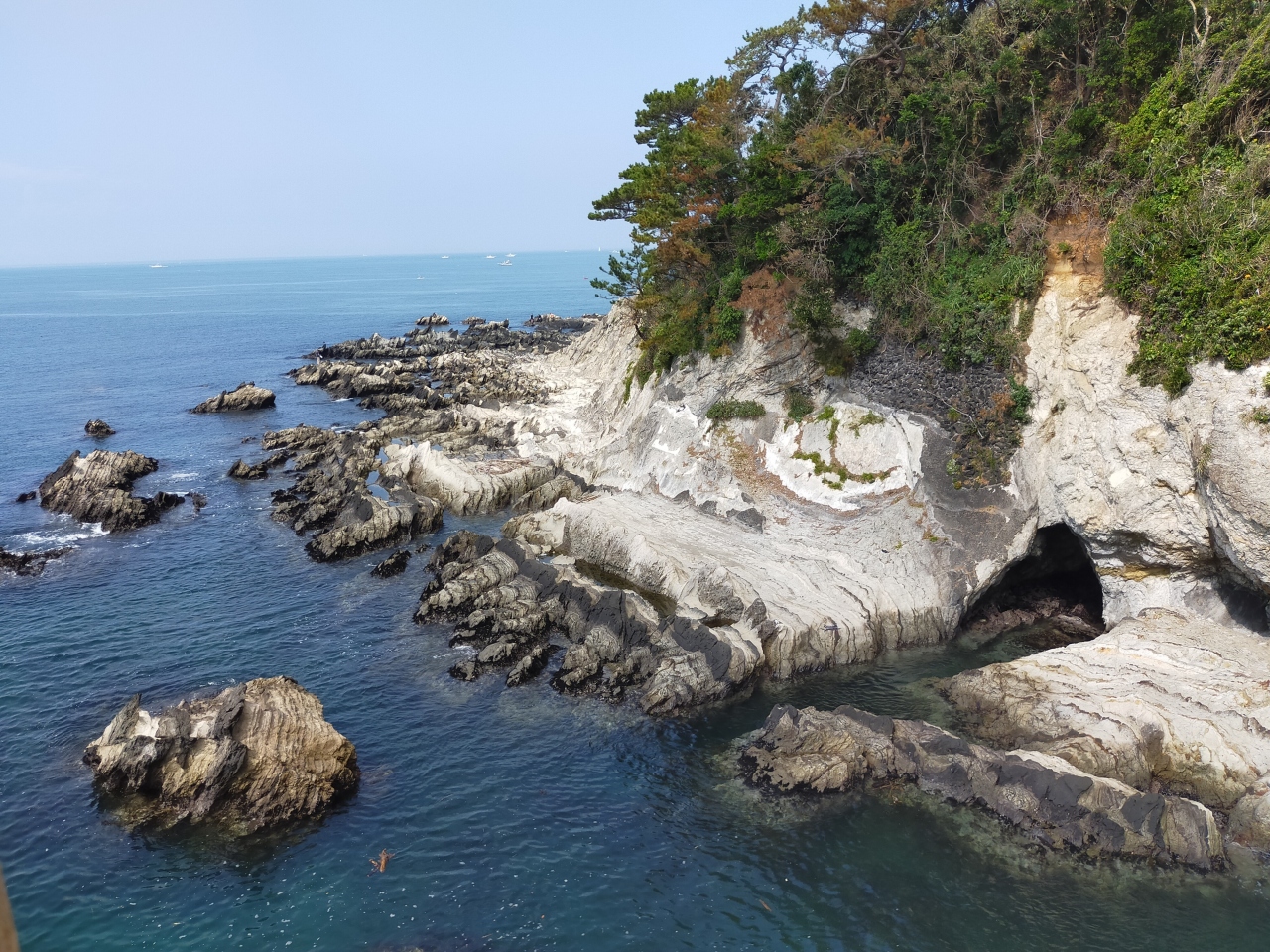 自然が造り出した海岸線の岩場の造形美は見事で、この日は富士山は見えませんでしたが「夕日の丘」の展望台からのから見る富士山を背にした夕日の絶景は必見だそうです。