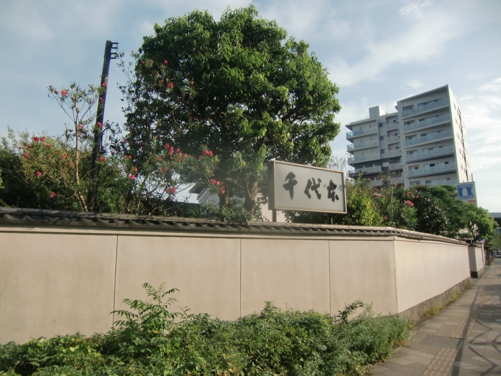 赤い雨戸が閉まったまま営業している様子がないが、玄関前には雑草等は生えてなく、植栽と建物は手入れされいて荒れてない様子で、国道16号線側の「千代本」の看板もまだ残っている。