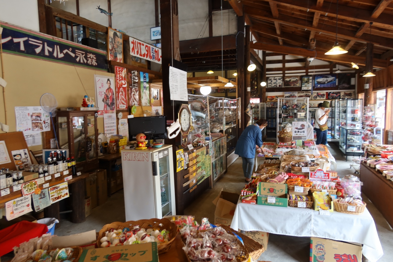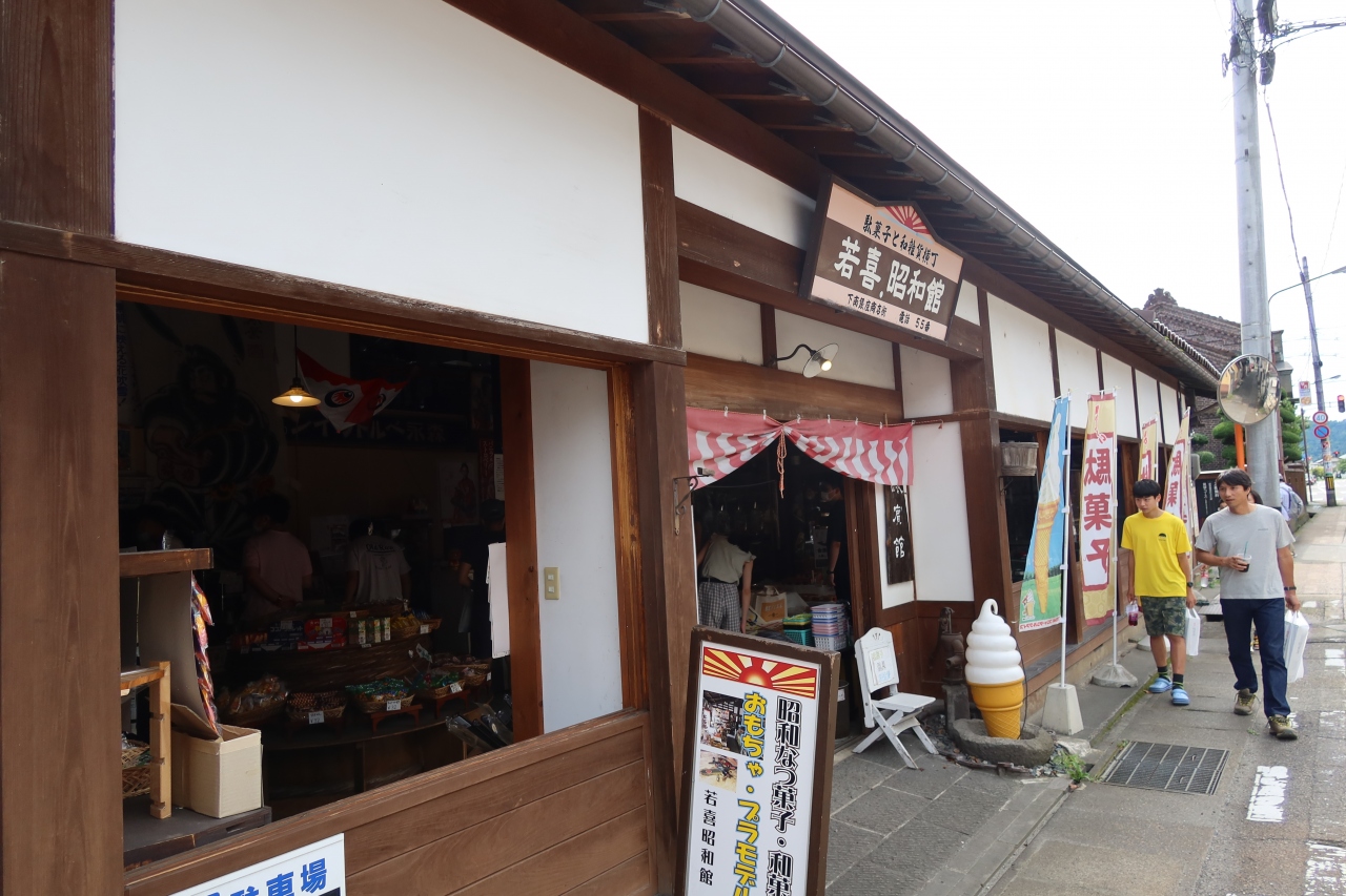喜多方のふれあい通りと市役所通りの交差点に若喜商店があります。260年前から続く味噌醤油店には煉瓦で作られた蔵や、昭和時代のおもちゃや駄菓子がある昭和館があり、懐かしものに出会えることが出来る場所です。勿論、角にある店舗の建物も昭和初期に建てられたもので、商店自体レトロ感たっぷりです。