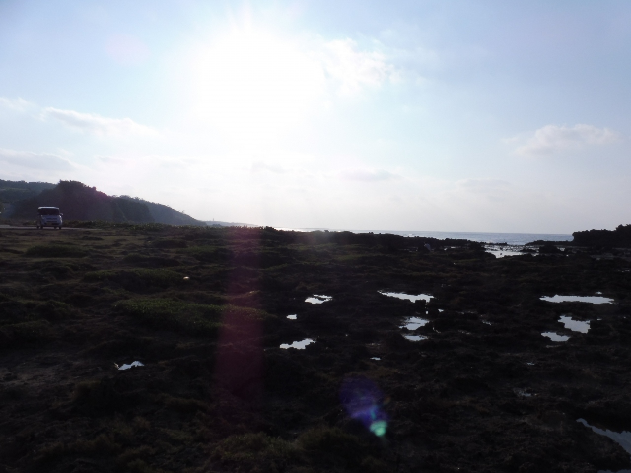 ゴツゴツの岩場を注意して歩いていくと穴の下まで進めます。