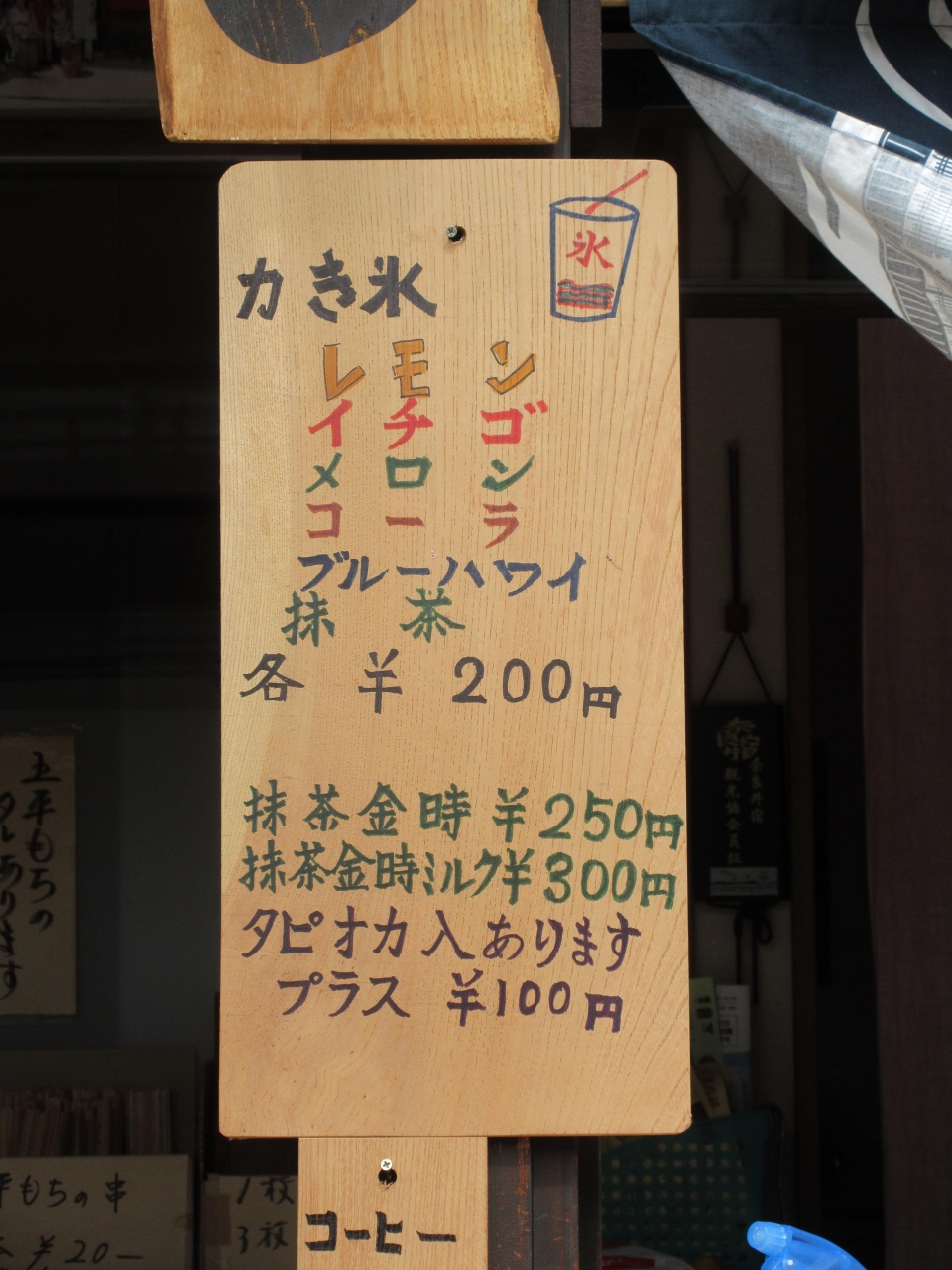 奈良井宿中町の大宝寺入口にあります。おやきが有名で奈良井宿へ来ると店頭のベンチで野沢菜のおやきを食べます。きんぴらのおやきも美味しいです。食べ歩きと店頭ベンチで食べる店で声を掛けると人が奥から出てきます。昔ながらのかき氷もあり懐かしくなりました。タピオカ入りのかき氷があり流行を取り入れていました。おやきを手軽に食べたい方におすすめの店です。