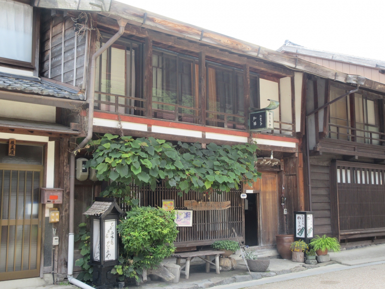 奈良井宿中町にあります。100年以上前の民家を店にした食事処です。細長い店の真ん中に囲炉裏があるのが特徴です。冬には火を入れて暖まってもらうそうです。鍋焼きうどんや土鍋ぞうすいがあり、夏場ばかりでなく寒い時期に食べたくなる料理を揃えています。毎年のように訪れている奈良井宿で入ったことのない店で食べるのが楽しみの一つになっています。以前涼しい時期に利用し、鍋焼きうどんを食べました。外観からは分かりませんが、外国人観光客が食べられるスパゲティやサンドウィッチもあり囲炉裏と共に人気があります。