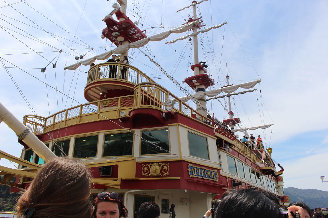 神奈川県の観光地、箱根にある海賊船です。芦ノ湖を横断移動する手段としてだけでなく、乗船することが観光で楽しむことができました。いくつか船の種類があり、今回乗船した船にはトリックアートがあり面白かったです。