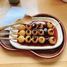 みたらしの餡はくどくないさっぱりとした甘さで、小ぶりのお餅と良く合います。