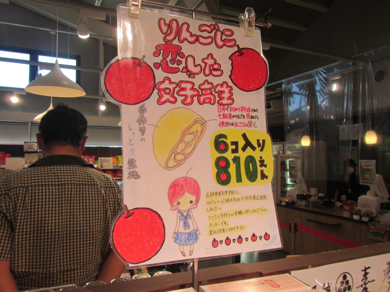 七飯・函館のお土産を売っていましたが、七飯の名産、りんご繋がりなのか、中には一部、津軽海峡の対岸の青森のお土産も売っていました。
