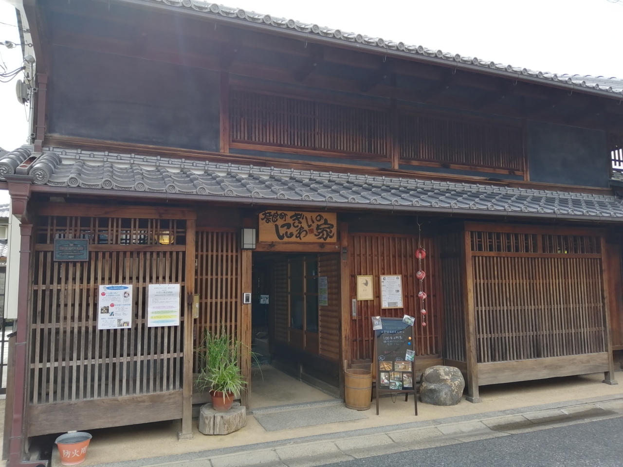 江戸時代の末期から明治時代にかけての、間口が狭くて格子戸がある町屋が並んでいます。