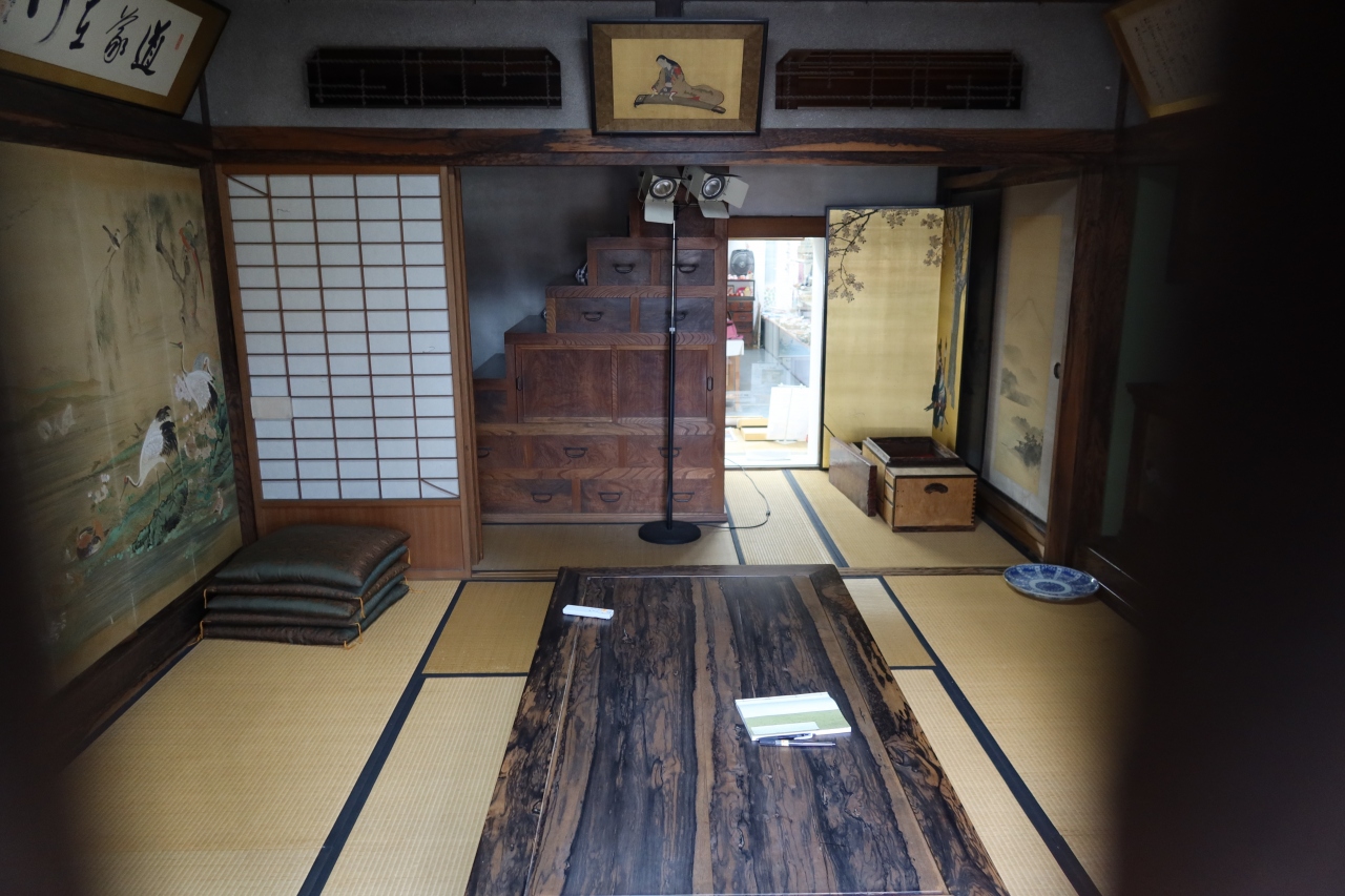喜多方の老舗味噌醤油店である若喜商店のレンガ蔵の一階に縞柿の蔵座敷があります。中に入るとは出来ず、ガラス越しにしか見られないので、良く見えませんが、天井、柱、座卓まで木目が美しい縞柿で作られている贅沢な造りの座敷です。無料で見学でき店員さんも説明してくれるのが良かったです。