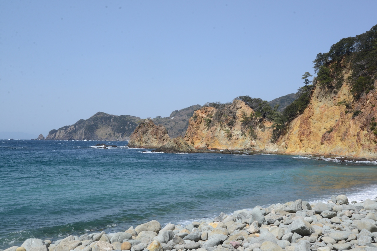 砂浜のビーチではなくゴロタ石の海岸です。歩きにくいので履物を選択していくとよろしいでしょう。水質が良いので水中やゴロタ石の隙間にはたくさんの魚やエビ、カニなどがいることでしょう。ダイビングにも人気のスポットだということです。海水浴シーズンでなくても景色を楽しめる海岸です。