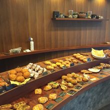 店内は、曲線を描いた個性的な棚にパンが綺麗に並べられています。