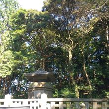 拝殿からさらに急な石段を上がった先に徳川家康の神厩(お墓)があります。