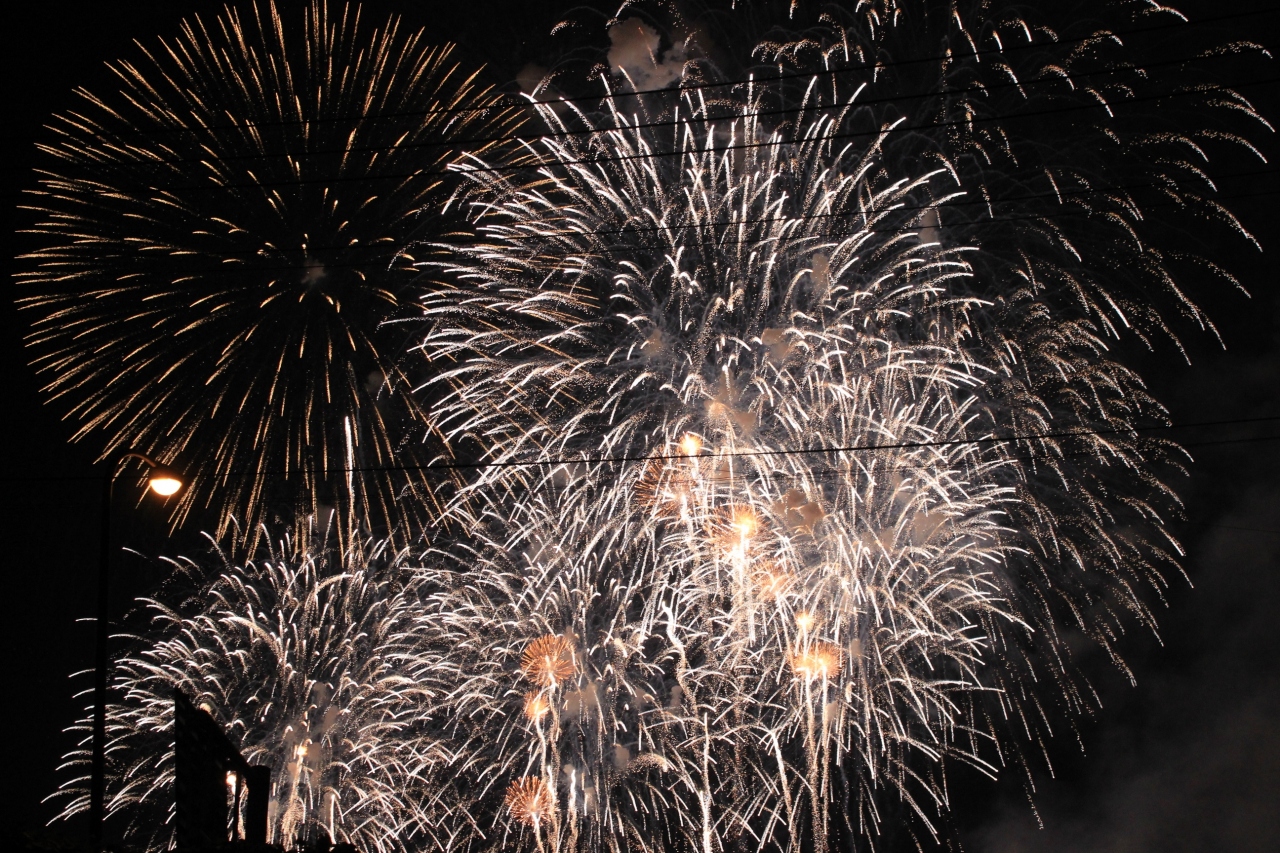 町中での花火大会なので、見る場所はなかなか無くて大変。