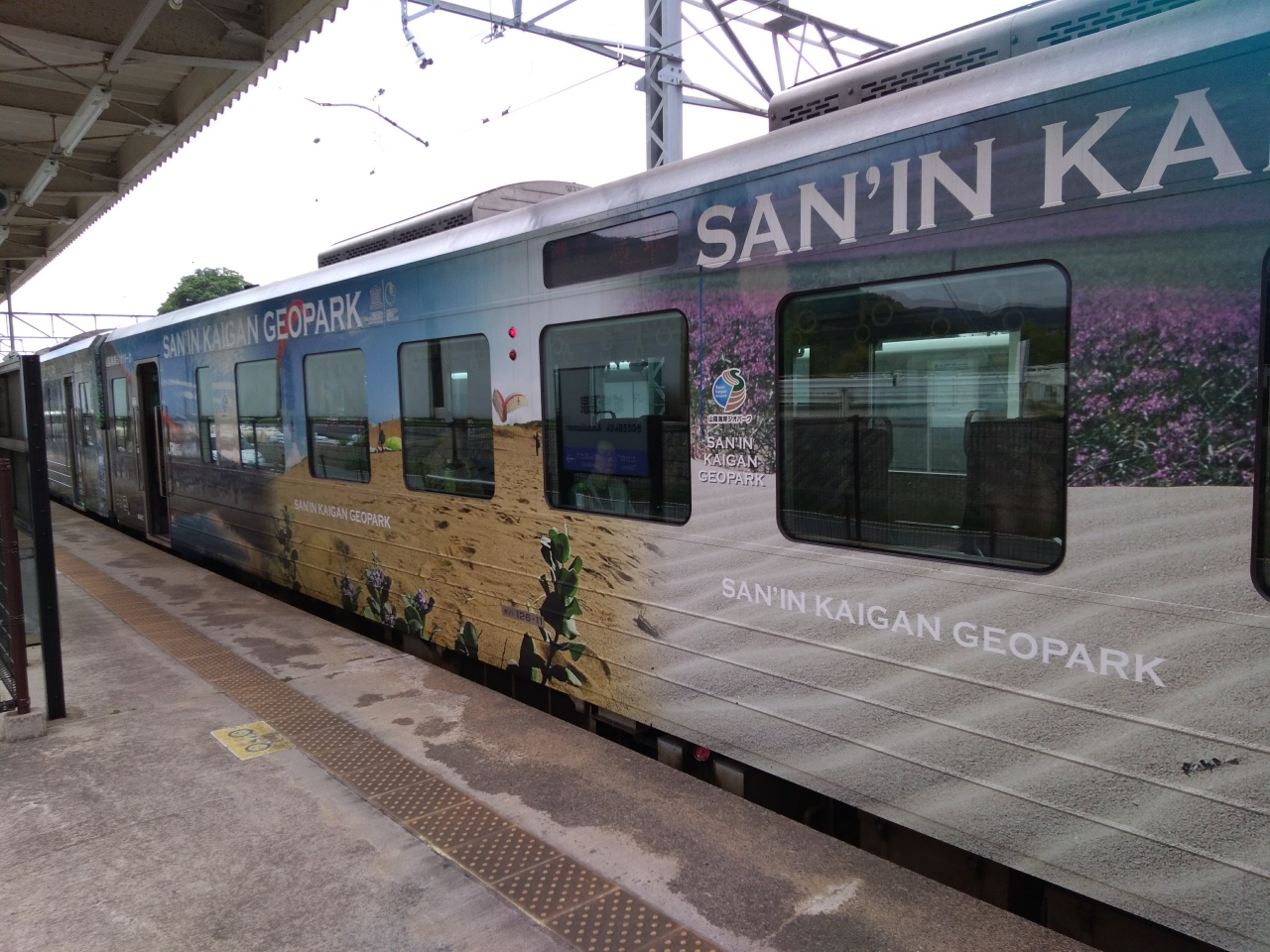 城崎温泉から鳥取駅まで、山陰海岸ジオライナーで旅行しました。6月の快晴に恵まれて、山陰のきれいな日本海の海岸線がとても美しかったでした。添付写真のように、車内も快適で、かなり空いていて、大きな車窓を通して、景色を満喫できました。