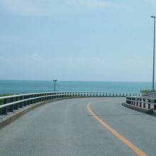 渡った左下はいい感じの公園で、エメラルド色の海が眺められらいい