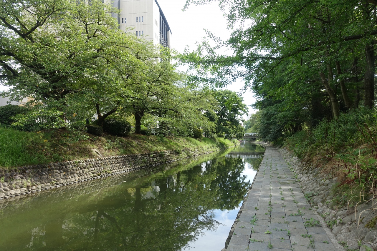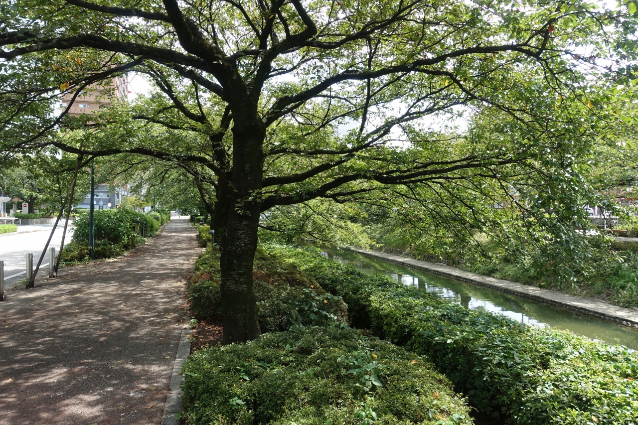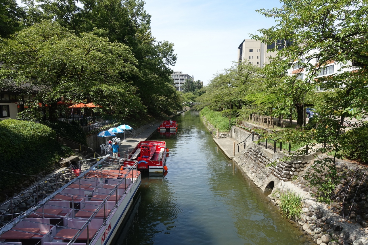 松川に沿って桜並木が続いていて開花の時期はさぞかしきれいだろうと思います。行ったのが真夏でしたが、緑の並木もなかなかきれいでした。歩道部分が木陰になっているため直射日光を避けられ、思ったより歩きやすかったです。秋は秋で葉っぱが色付いてきれいかも。