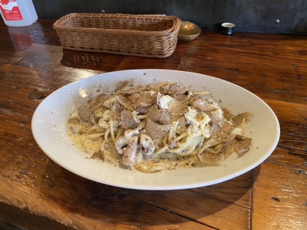 食べたのは世界一のムール貝!身がぷりっぷりで美味しかったです。そしてデュクセルクリームのスパゲッティにトリュフをたくさんふりかけてもらい、、、最高(^^)