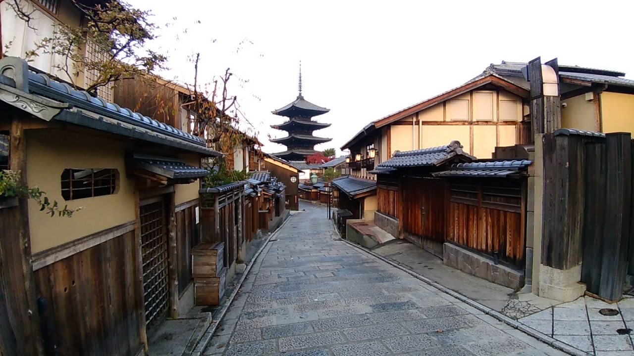 東山から清水寺へ徒歩散策していると、添付写真のような、きれいな法観寺の五重塔が現れてきて、たいへん感激でした。京都の代表的な絶景という感じで、絶対見逃せない観光アトラクションです。周辺には、和風の素晴らしい景色が広がっていて最高です