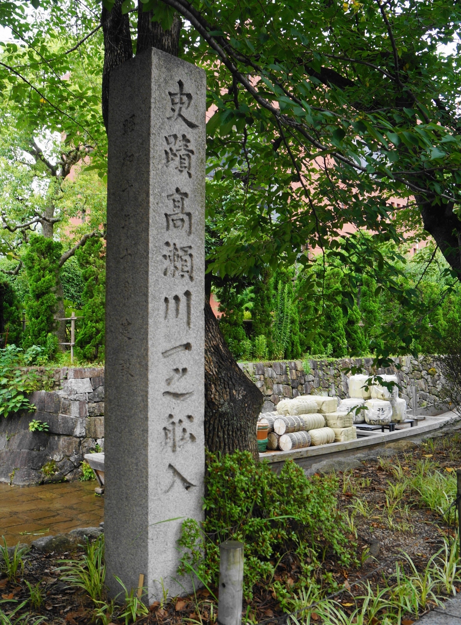 高瀬川沿いには石碑や案内板がたっています。