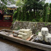 荷を積んだ高瀬舟が再現されていて、当時の雰囲気を味わえます。