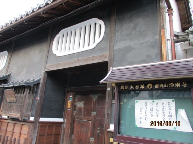 浄琳寺は、黒壁スクエア、北国街道ぞいにある真宗大谷派の寺院です。黒壁を散策中通りかかりました。漆黒の壁に白い格子の窓、上に太鼓櫓があり、黒壁のお寺らしいと感じました。ただ非公開のため、外から見たのみです。外から見るだけでもみごたえがありました。