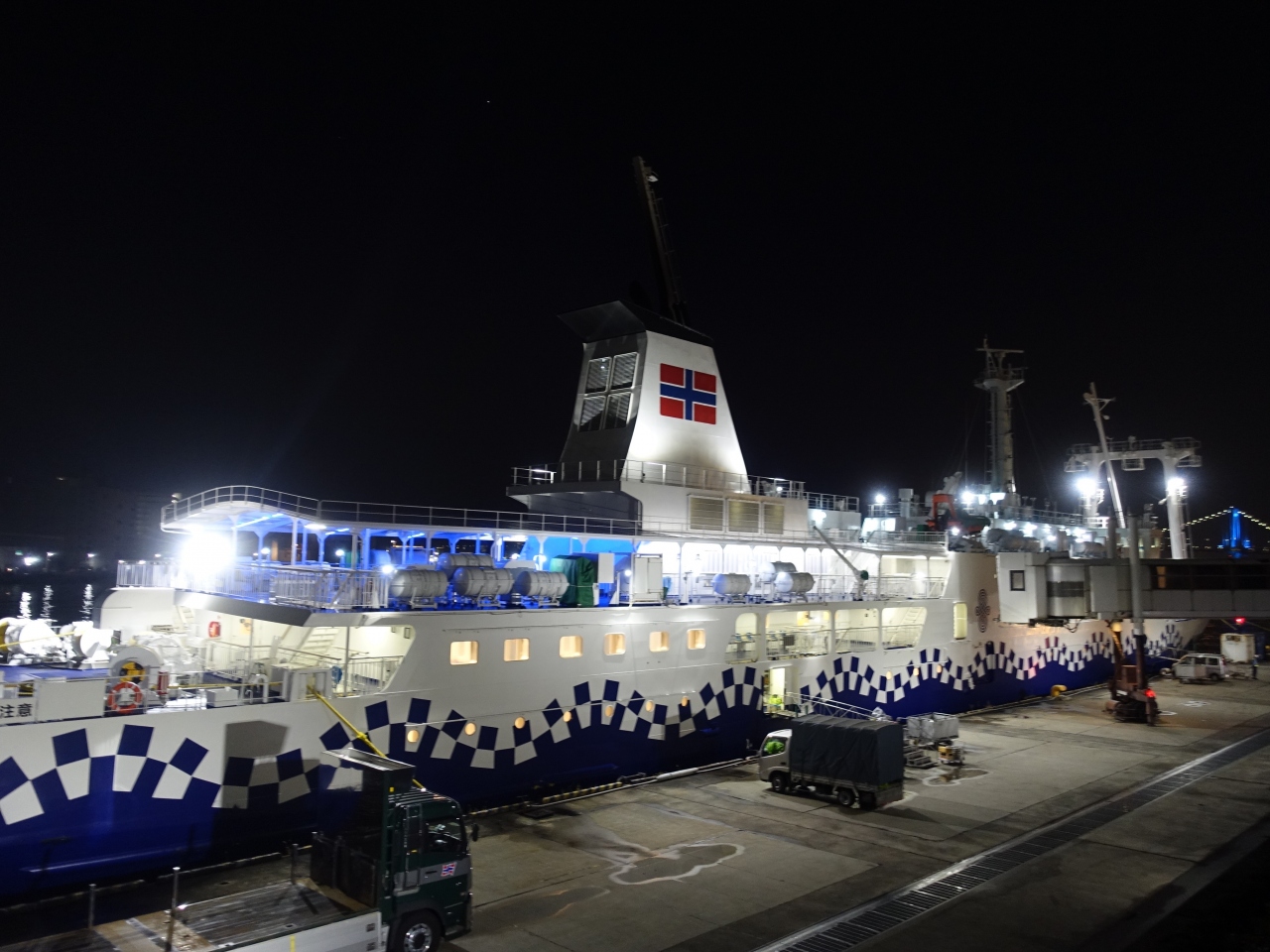 竹芝桟橋は、東京都心にほど近い割には人が少なく、雰囲気が良いです。昼と夜では雰囲気がかなり異なりますが、それぞれの良さがあります。夕食後に足を運んだところ「さるびあ丸」が停泊していました。POPなカラーリングがお洒落だと感じました。