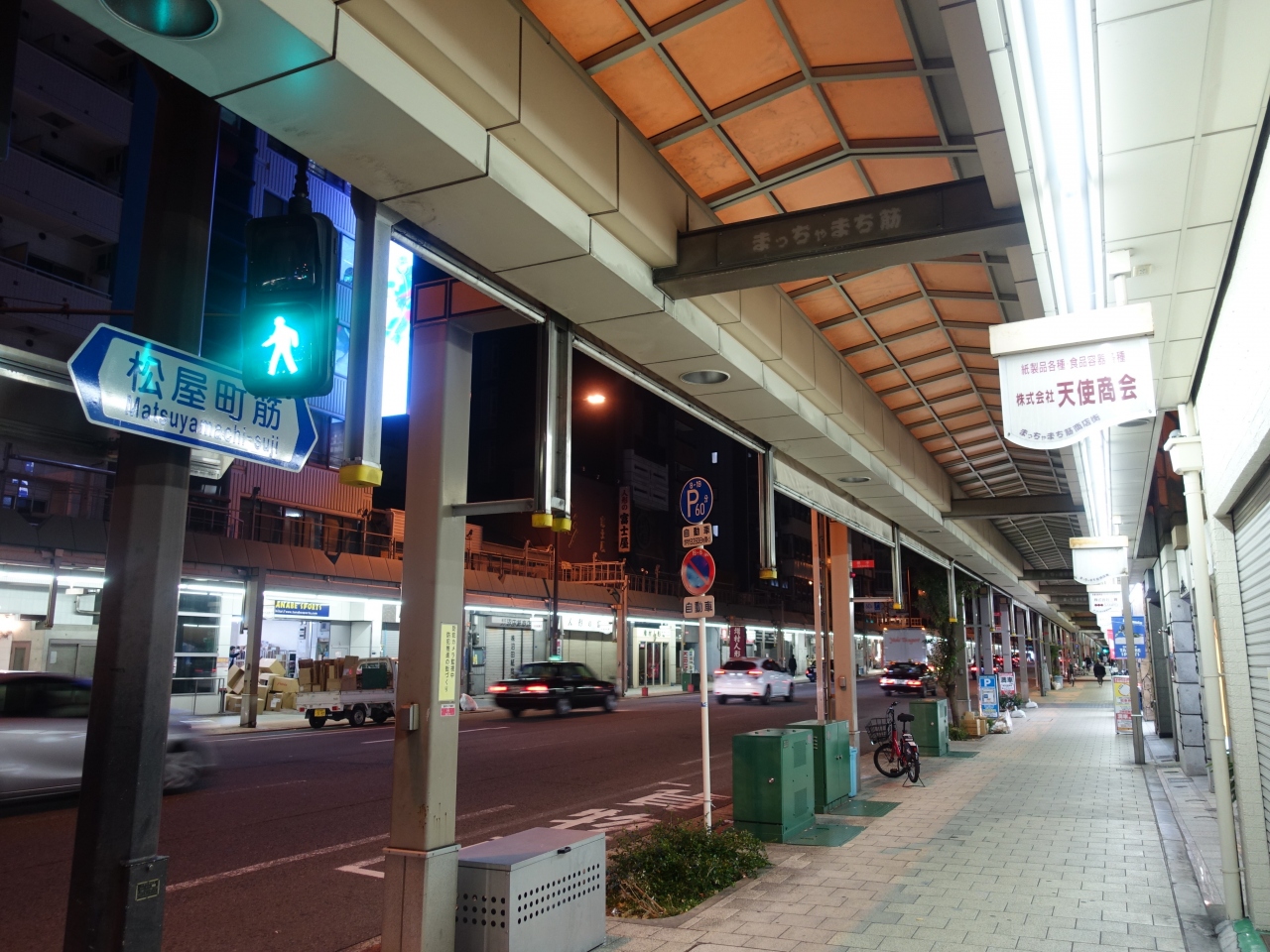 松屋町筋は、大阪市街を南北に縦断する交通の要所です。天神橋交差点から公園北口交差点までの約4.1キロと、それほど長い通りではありません。途中、長堀通りより南はアーケード商店街になっており、まっちゃまちすじ商店街として地元の人に親しまれています。ただ、観光要素は感じられませんでした。