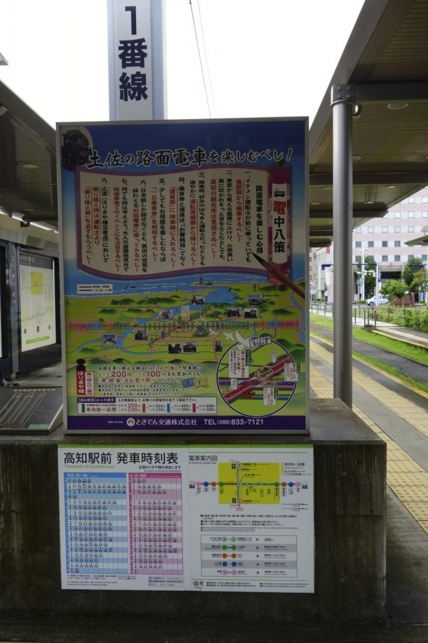 高知は路面電車が発達した都市で、高知市内を土佐電鉄の車両が走っています。高知駅前には、高架化されて近代的なターミナルとなったJR高知駅前に直接乗り入れ、市内へのアクセスの良さを誇っています。電車の方も、従来からの車両、新鋭車両とバラエティに富んでいて、飽きることがありません。