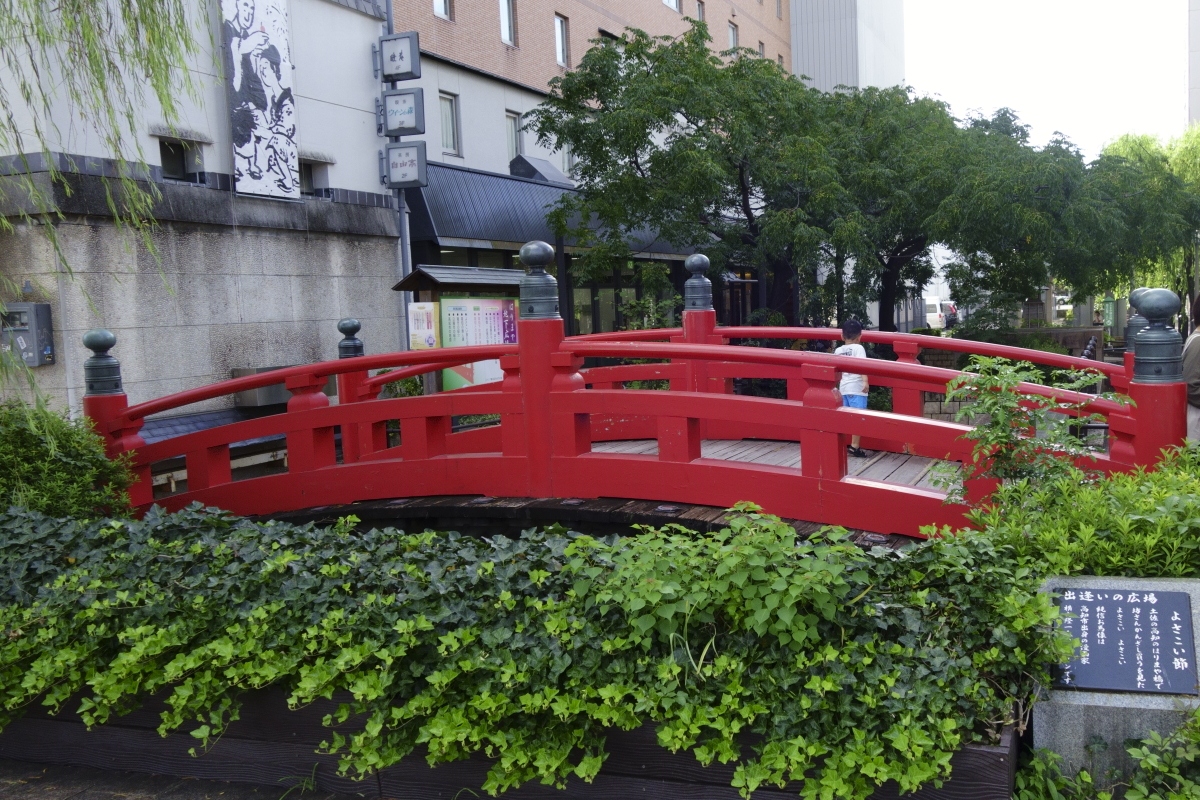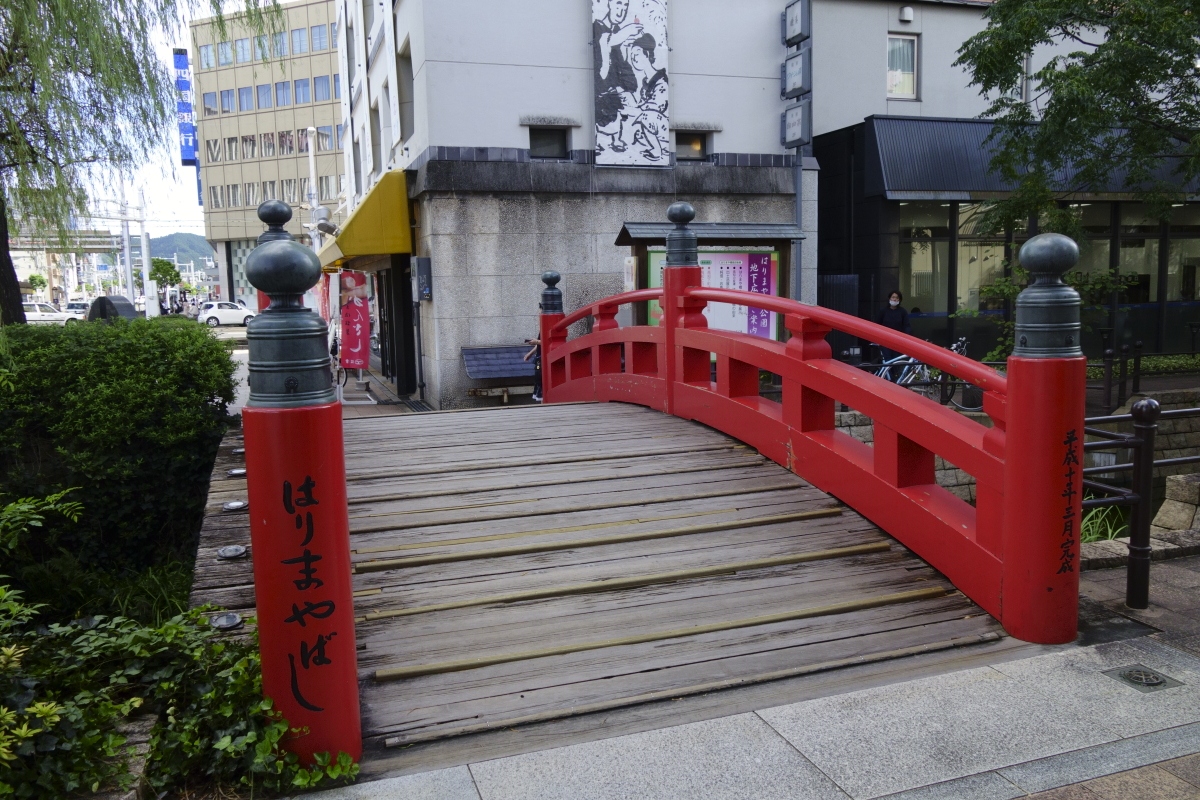 高知を愛でる歌に登場する「はりまや橋」。赤い欄干の太鼓橋風のコンパクトな橋は、風情があります。周辺は親水公園になっていて、交通量の多い中にものんびりした時間が過ごせそうです。高知の中心地とは思えない静かな時間と空間が共有できるのに驚きでもありました。