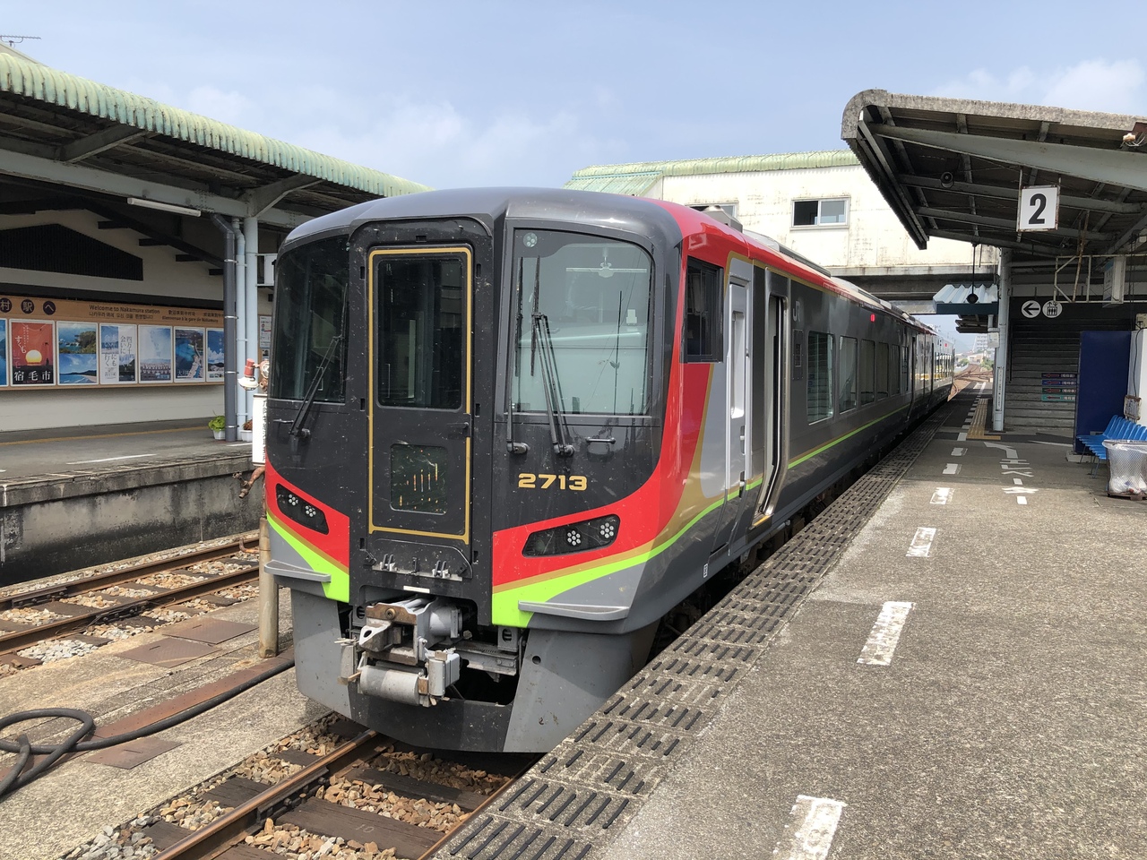 高知~中村間に7往復、高知~宿毛間に1往復運転されているJR四国の特急。土讃線と窪川から先は土佐くろしお鉄道を走り、1日1本のみ中村から先、宿毛まで直通します。全列車、高知駅では、岡山・�松からの特急に同じホームでの乗り換えが可能で、乗り換え時間もストレスのないくらい、中村では宿毛発着の普通列車と数分での接続をしています。国道33号線と並行して走る土讃線では、山が海まで迫った地形のため海と山の繰り返しの車窓で、急勾配も走ります。四万十川は中村駅より先にならないと見られませんが、比較的飽きない車窓でした。