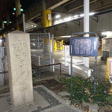 茅場町駅のすぐ近く、首都高速都心環状線の高架橋の近くに「かいうんばし」と平仮名で記された石の柱と案内板があります。この石の柱は、かつて使われていた海運橋の親柱です。