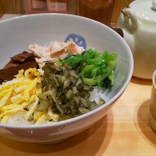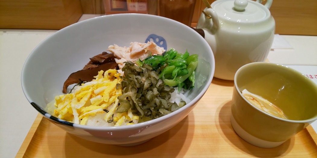お茶漬けのイメージが変わるようなスタイリッシュなお店です。隣接してる店舗がスープストックTOKYOとスタバなので女性客が多いです。お茶漬けの種類もたくさんありますが、鹿児島で食べた鶏飯風なものが人気のようでおいしかったです