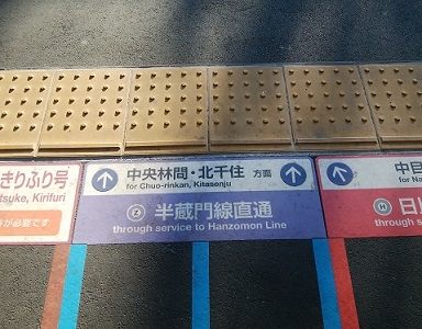 東武伊勢崎線の春日部駅を利用しました。のぼり電車のホームには待ち位置を表示する複数の案内があります。渋谷方面、浅草方面、中目黒方面、おまけに特急の乗車位置が記されており、不慣れのためよくわからずウロウロしてしまいました。