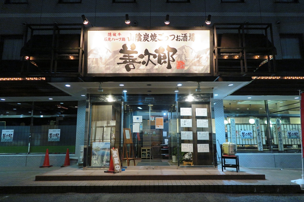 初めて訪れた松江での夕食、JR「松江」駅周辺にお店が多くなかったのは少し意外ではありましたが、その中から、南口を出てすぐの「善次郎」を利用しました。店内の造りは今風ではなく、おじさんは利用しやすい雰囲気でした。大山どりなど山陰の味が楽しめましたし、おすすめされた”炭火とり鍋”は美味しかったです。店長さんの元気な接客も気持ちよかったです。