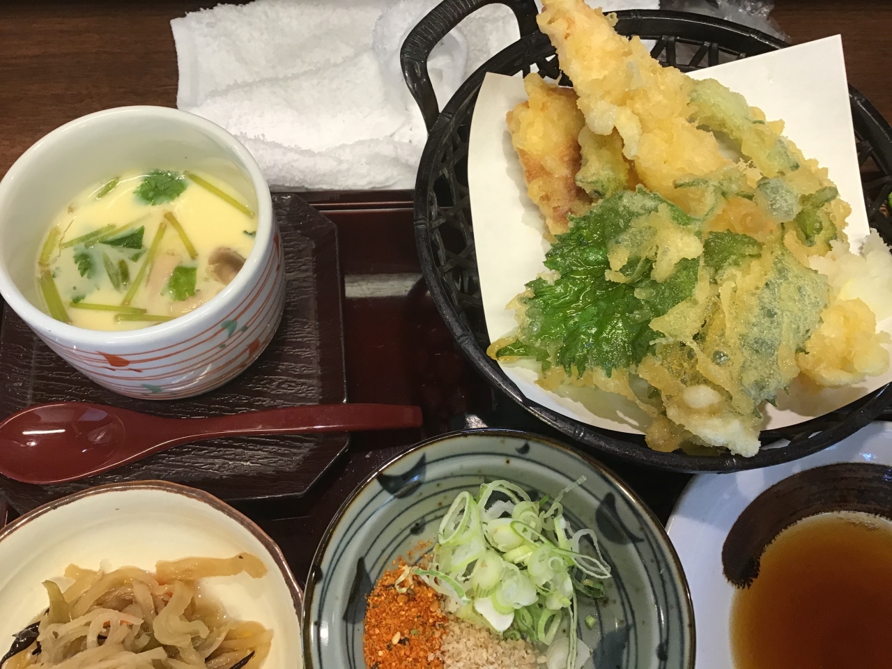 うどんも茶碗蒸しもいい。サラダと味噌汁は少し多過ぎる。