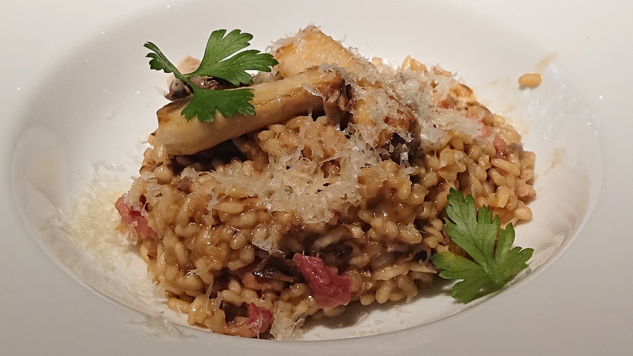 店内が想像以上にうっそうとした森になっていて、けっこう感動しました!なかなかやるな!ランチで利用しました。ポルチーニのリゾットです。ピザも薄めの軽そうなパリっとした感じで、美味しそうでした。次はカフェで、ケーキが食べたいナ。
