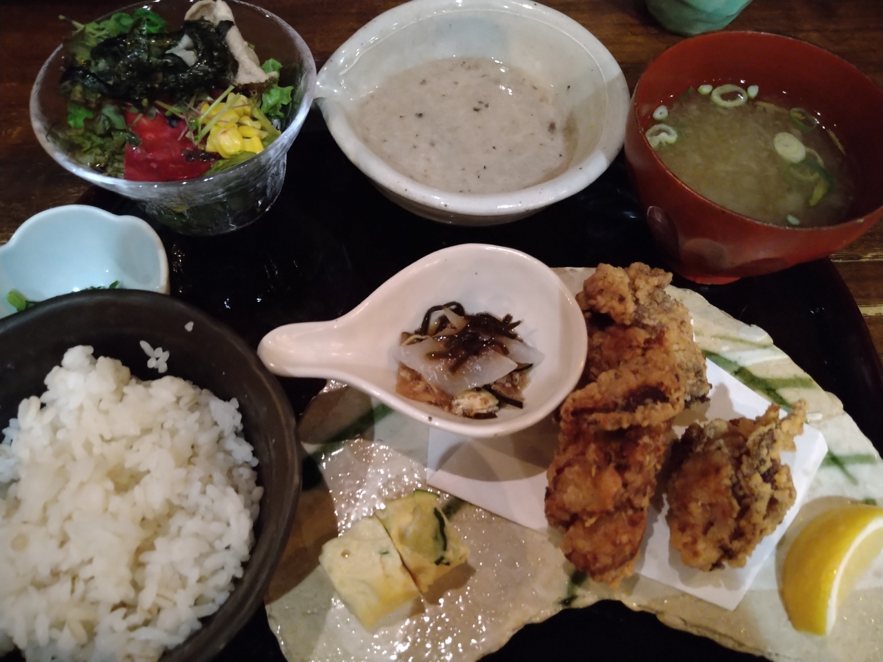とろろご飯に、選べるメイン(つくねか、唐揚げ)のコース。ご飯はおかわりできますが、十分お腹いっぱいになる量です。自然薯の付け合わせ料理も妙に美味しくて、また来よう!と思えるお店なんです。店内もシックでオシャレです。